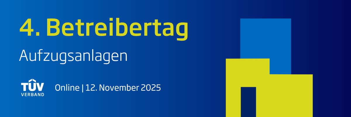 Wir freuen uns, Sie auch in diesem Jahr wieder über aktuelle Themen rund um den Betrieb von Aufzugsanlagen informieren zu können und laden Sie hiermit zum vierten TÜV-Verband-Betreibertag Aufzugsanlagen am 12. November 2025 ein. Im Rahmen dieser Online-Veranstaltung haben Sie Gelegenheit, sich mit den Experten der einzelnen TÜV-Unternehmen zu Erfahrungen über die Prüfpraxis an Aufzugsanlagen und den aktuellen rechtlichen Entwicklungen auszutauschen.