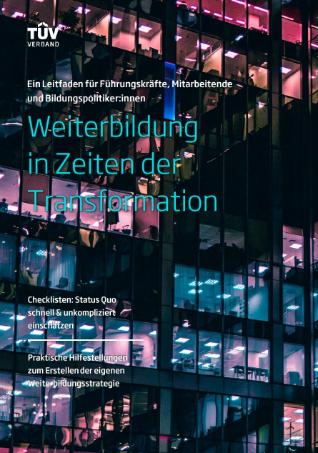 Alle zwei Jahre veröffentlicht der TÜV-Verband gemeinsam mit den TÜV-Weiterbildungsakademien die „TÜV Weiterbildungsstudie“, die Weiterbildungstrends in Deutschland beleuchtet. Klar ist: Wir brauchen neue Skills für eine neue Zeit – und nur, wenn wir wissen, wo die Herausforderungen in deutschen Unternehmen liegen, können wir sie auch angehen. „Change is the only constant“ in der Wirtschaft: Die KI-Revolution, der Druck zu nachhaltigem Wirtschaften durch die Klimakrise und der anhaltende Fachkräftemangel verändern die Arbeitswelt grundlegend. Daneben fordern auch Trends wie generativer KI-Einsatz oder New Work Arbeitnehmer:innen und Unternehmen heraus. In den TÜV-Weiterbildungsstudien schauen wir genau hin: Welche Folgen haben diese Trends für Unternehmen? Wo ist der Weiterbildungsbedarf besonders groß? Und wie bleibt Deutschland wettbewerbsfähig? Die nächste TÜV Weiterbildungsstudie wird 2026 erscheinen.